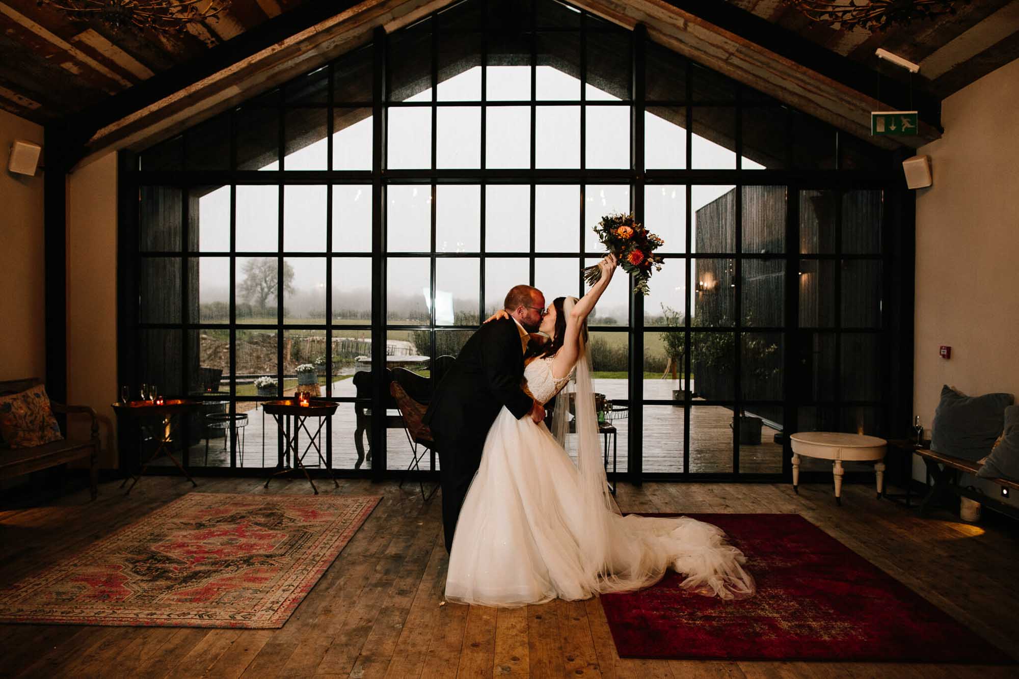 Lucy & Jan were one of the first couples to book the new Botley Hill Barn Wedding Venue, and I must say it is beautiful! Regardless of the barn itself, the view from Botley Hill Barn is breathtaking. Unfortunately for Lucy & Jan, the heavens were open for most of the day, and we didn’t get to utilise much of the outdoor space. Inside has everything you need for a warm, joyous celebration that the weather isn’t an issue at Botley Hill Barn.